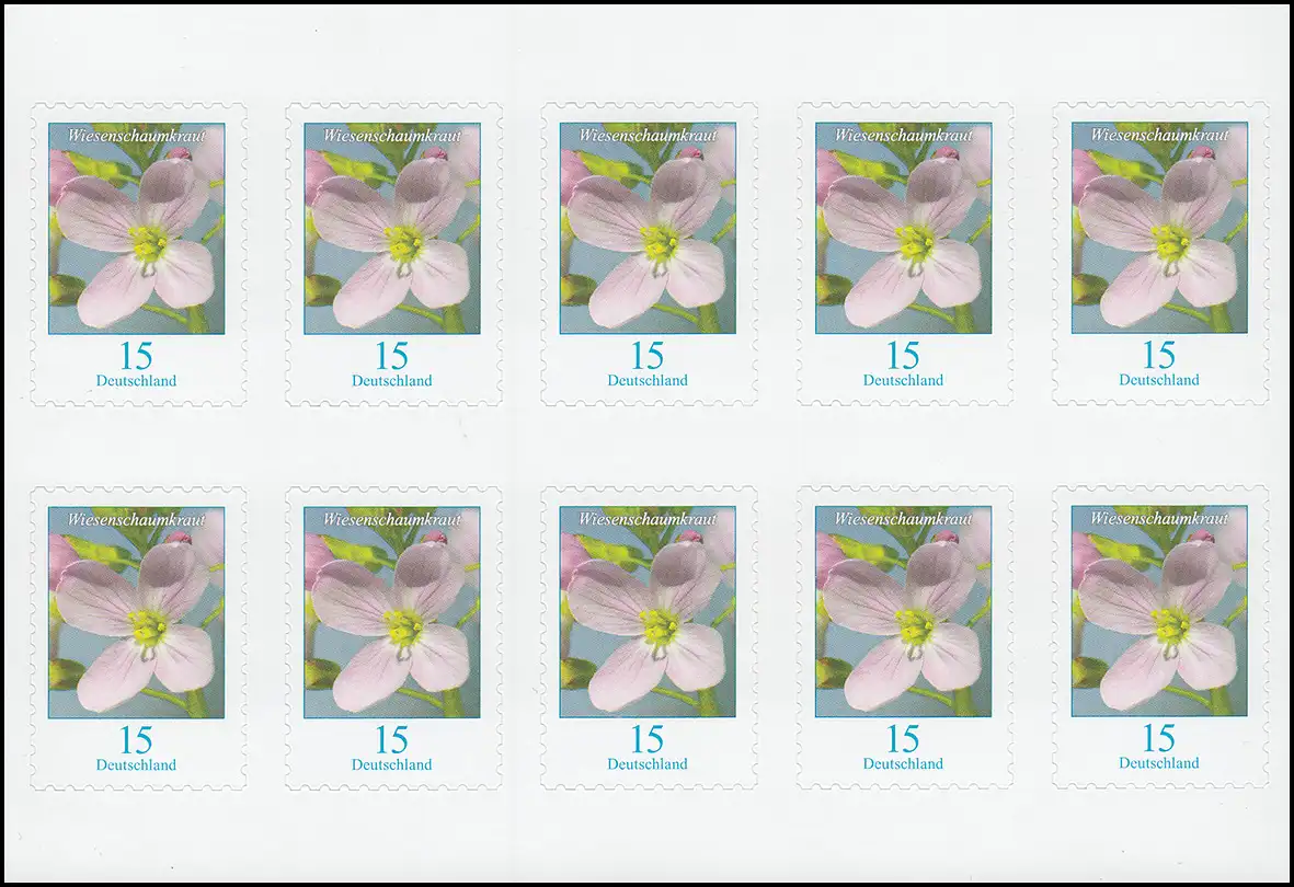 FB 82 Fleur Mousse de prés 15 cents, feuille de 10x 3431, post-frais **