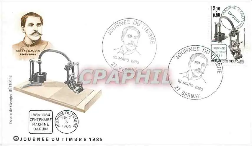 FDC 1er Jour Journee du Timbre 1985 Centenaire Machine Daguin