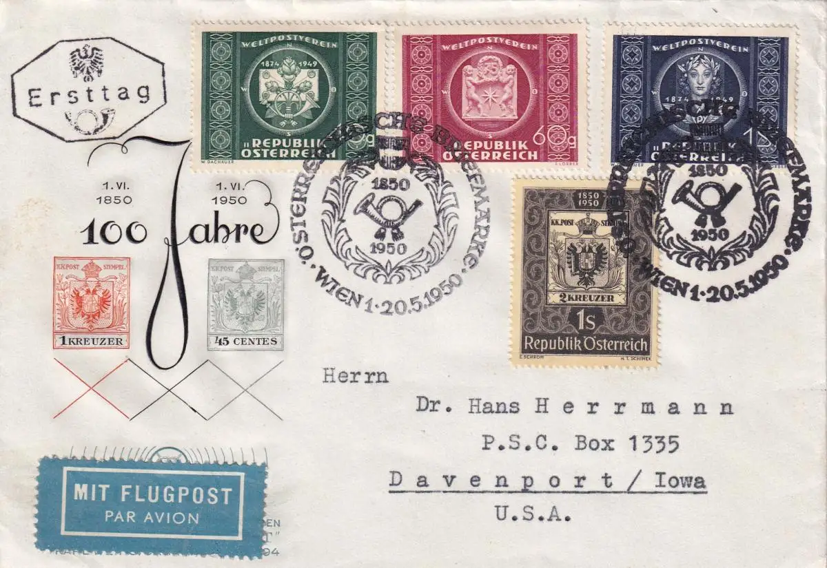 FDC Volspost 1950 de Vienne à Davenport/Iowa