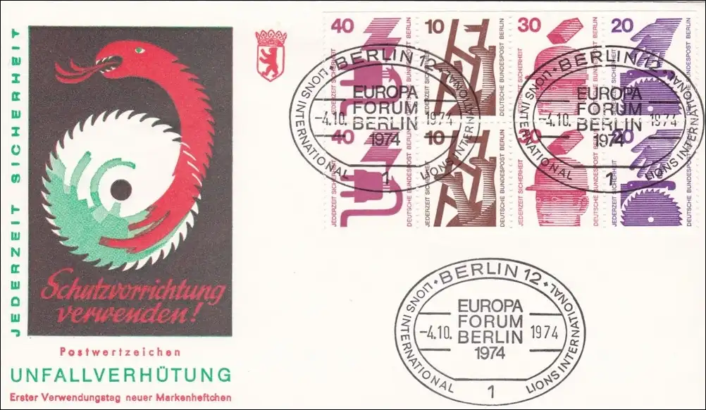 FDC - Cahiers de marque - Prévention des accidents 1974, H Bl. 17