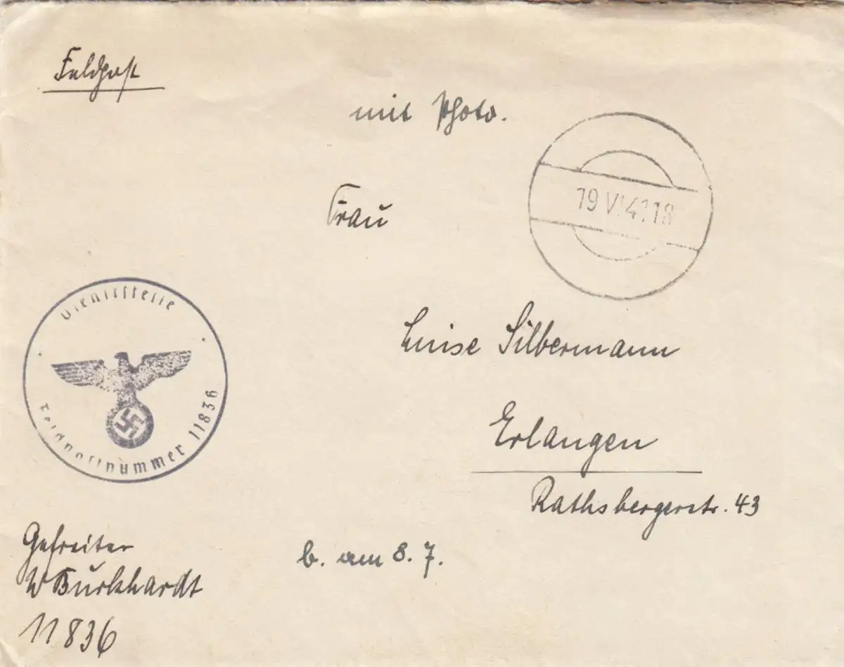 Lettre FP No 11836 après l'obtention 1941 avec le contenu de la lettre