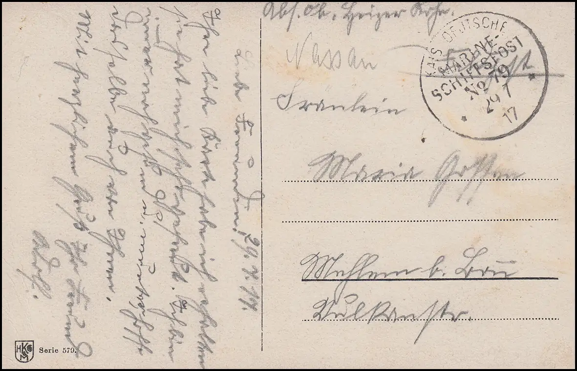 FRANÇAIS NAVIRE MARINE POST No 79 - 29.7.1917 SMS Nassau sur carte de félicitations