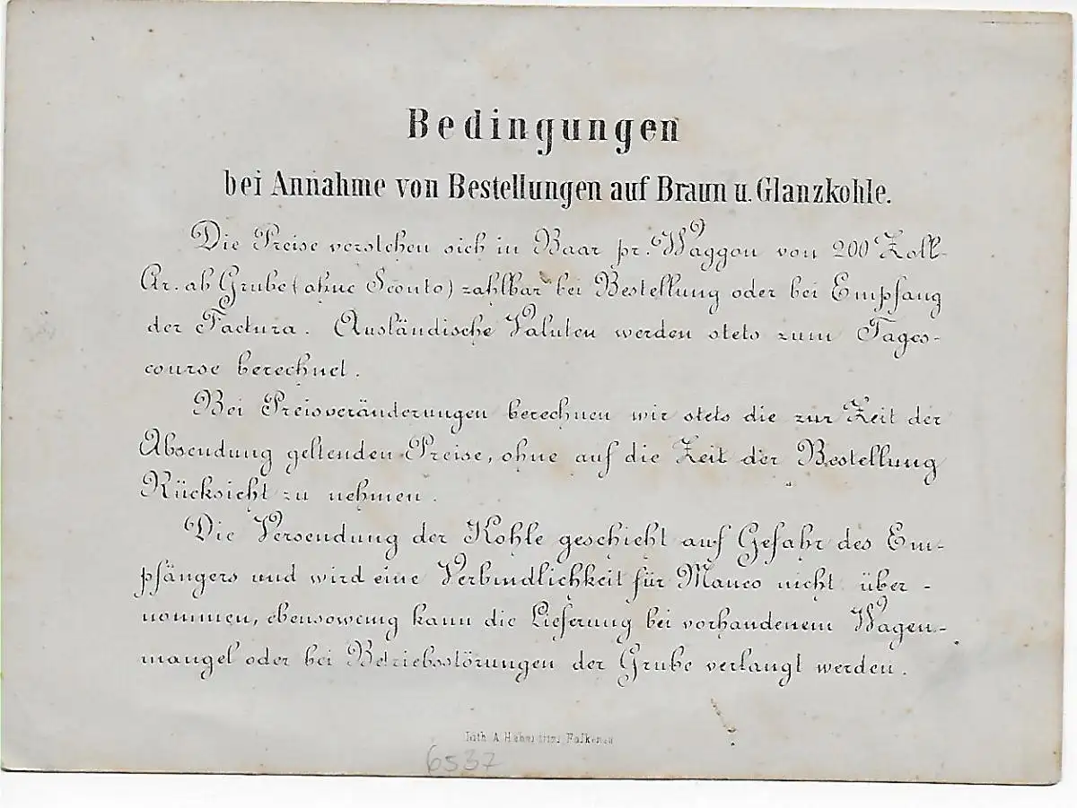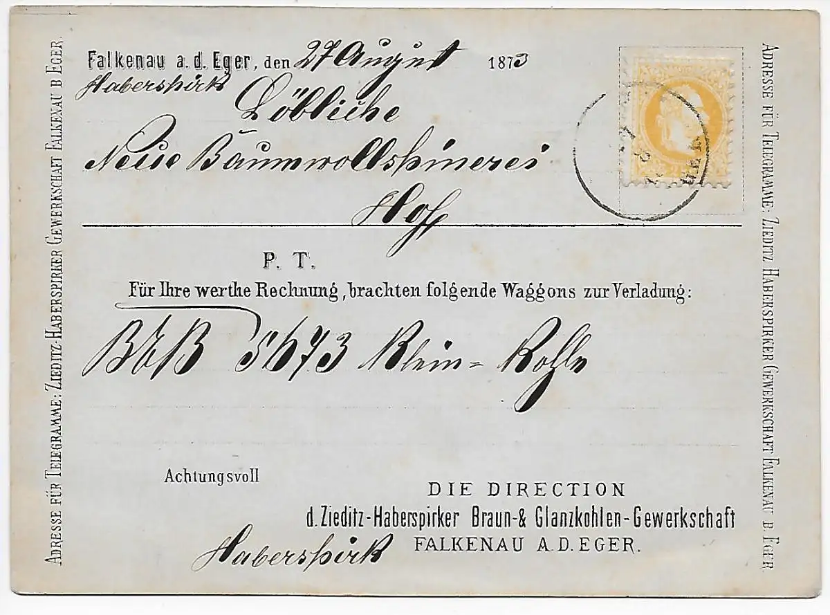Falkenau am Eger, 1873 par cour: commande de charbons bruns et brillants
