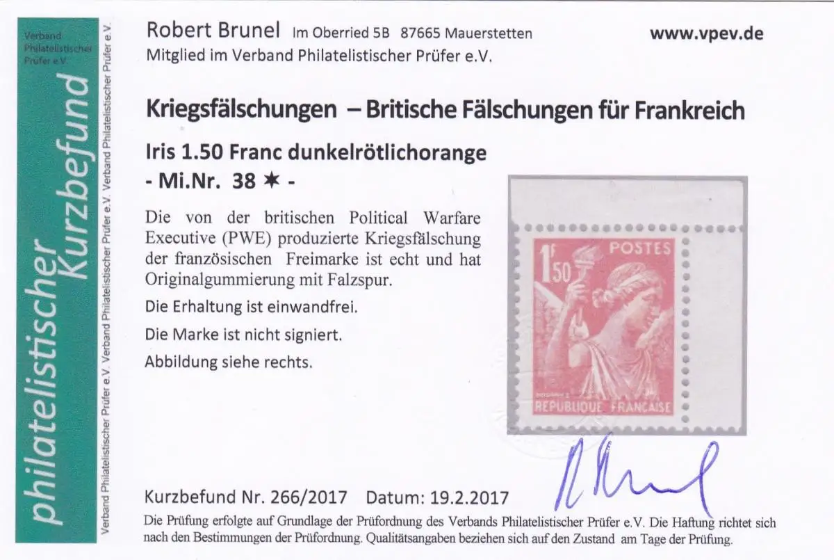 Falsification de guerre: faux britannique pour la France;Mi n° 38, 42, *