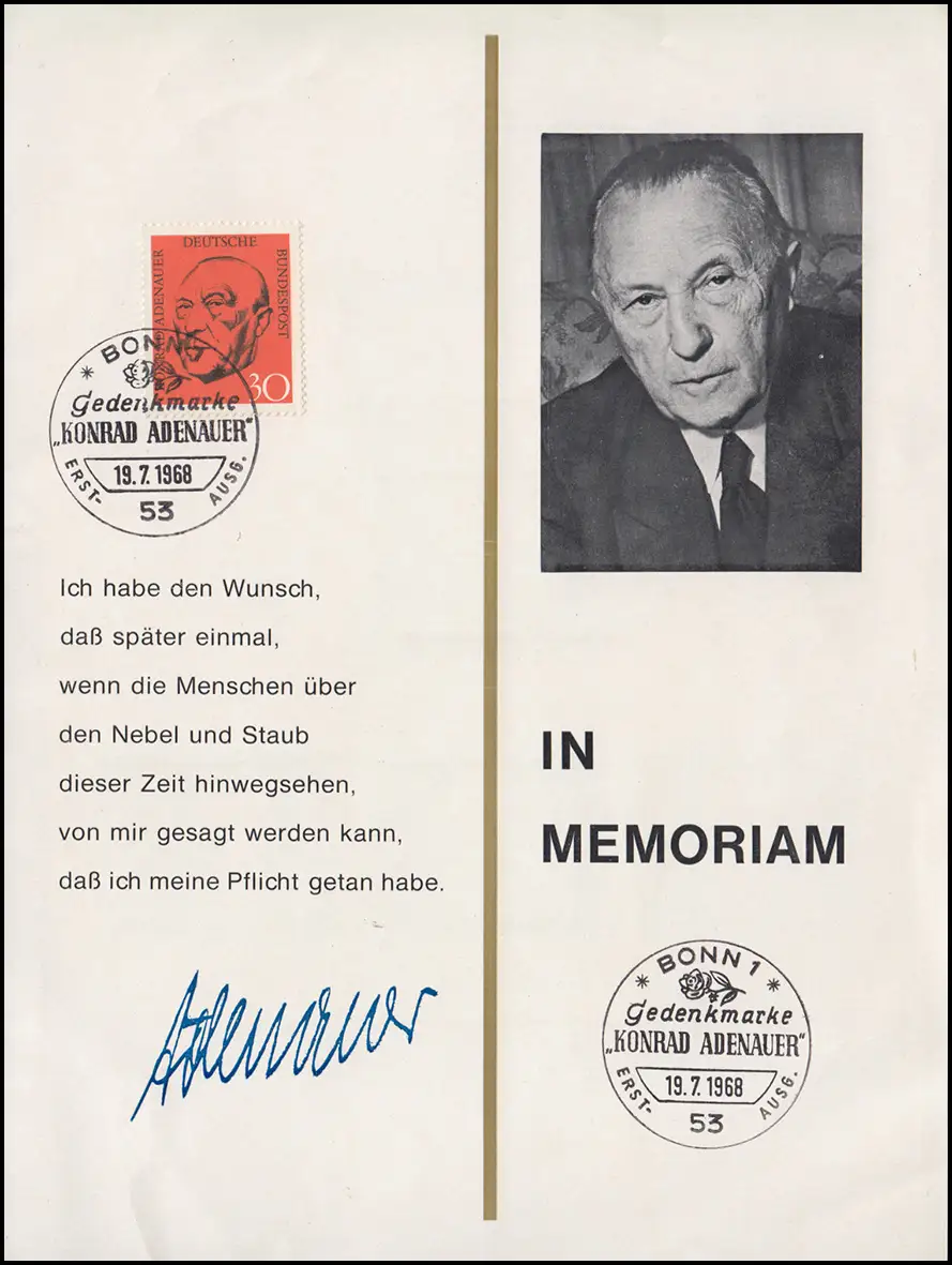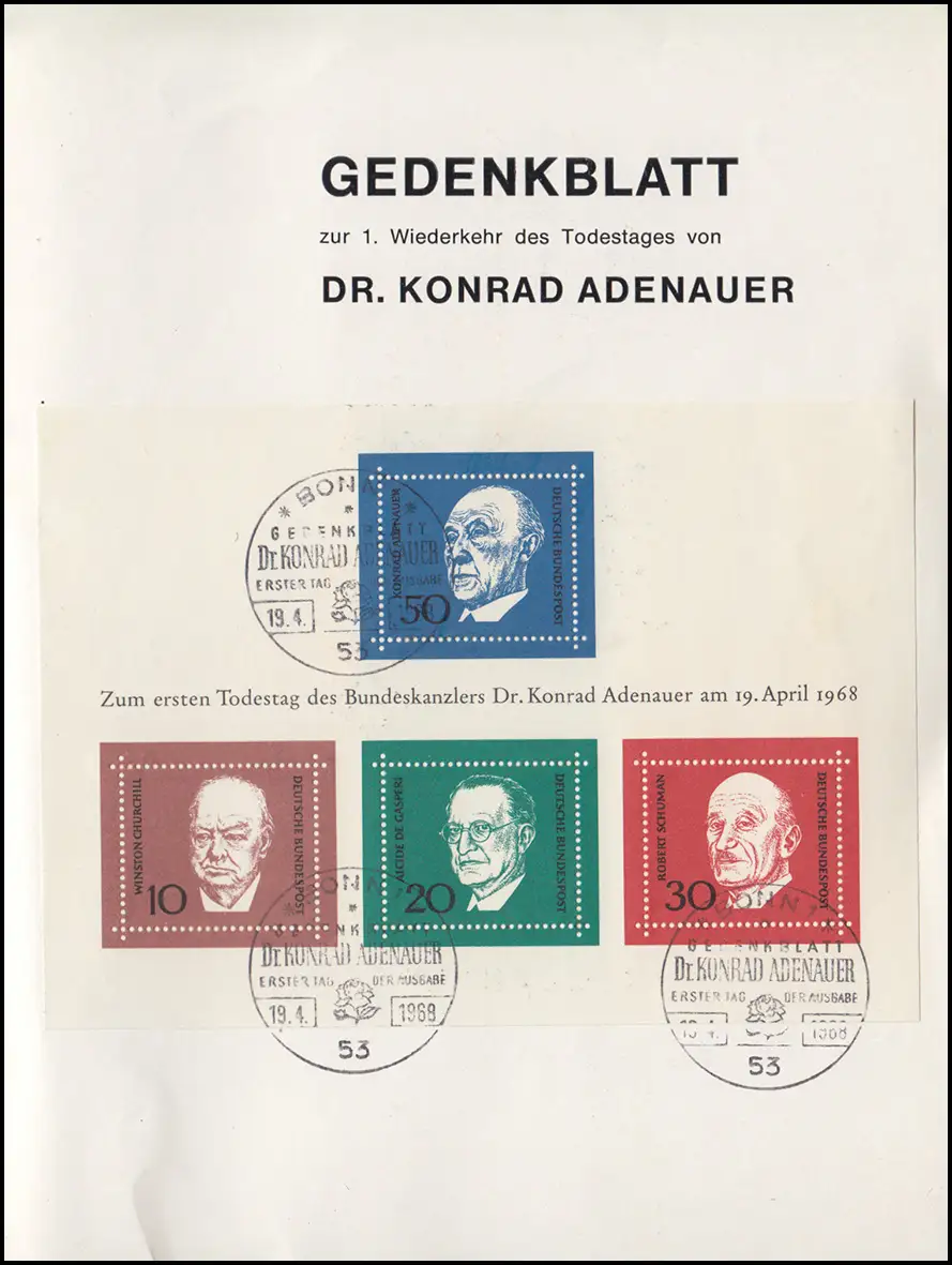Carte pliante au MEMORIUM Adenauer 567 avec ESSt et bloc 4 avec SSt Bonn 19.7.1968