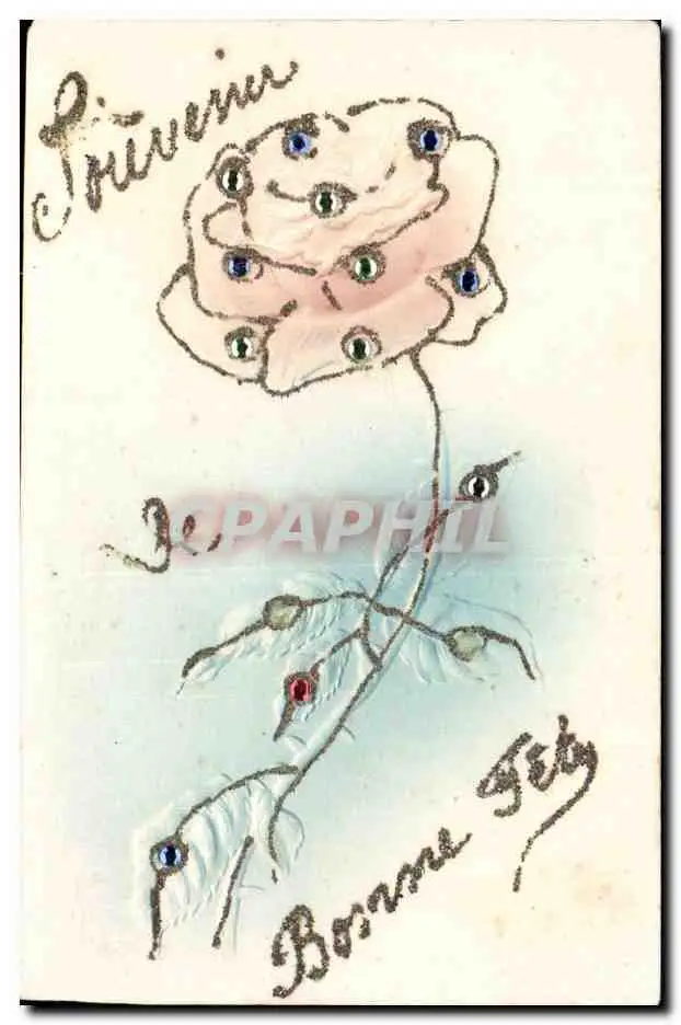 Fantaisie - Bonne Fete - Rose avec relief dore - card with texture and glitter - Cartes postales