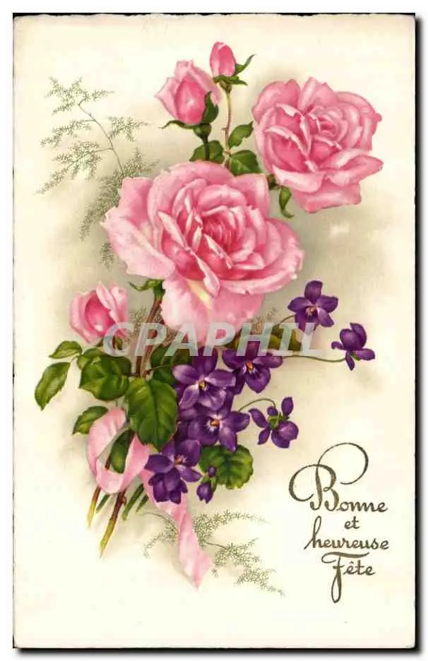 Fantaisie - Bonne et Heureuse Fete - Leurs - Rose - Flower - Cartes postales