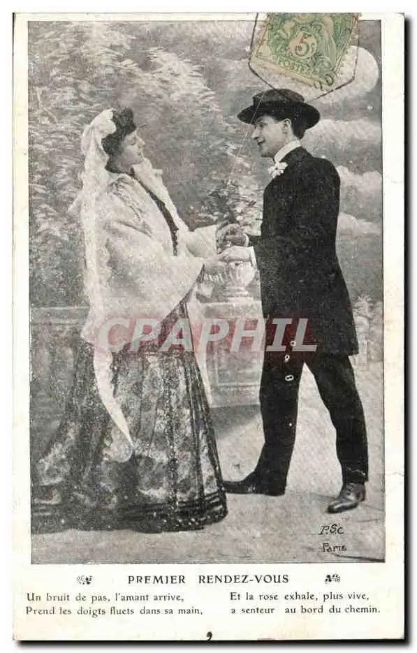 Fantaisie - Couple - Premier Rendez Vous - Un bruit de pas l&#39amant arrive - Cartes postales