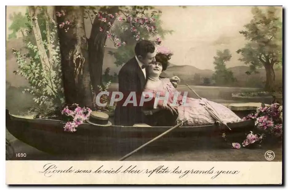 Fantaisie - Couple - floating romantic boat - Cartes postales