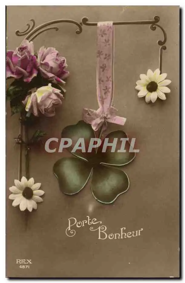 Fantaisie - Porte Bonheur - Trefle a quatre feuiles - four leaf clover - Cartes postales