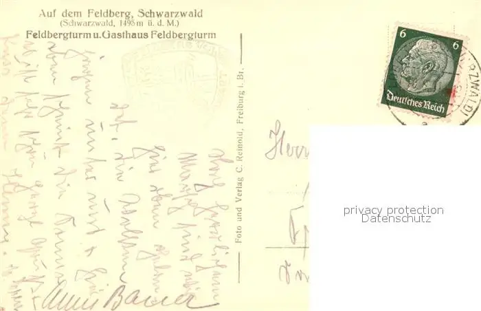 Feldberg_Schwarzwald Feldbergturm und Gasthaus Feldbergturm Feldberg Schwarzwald postalisch gelaufen 1921-1965 Erhaltung siehe scans [WerneD78] WernPID7