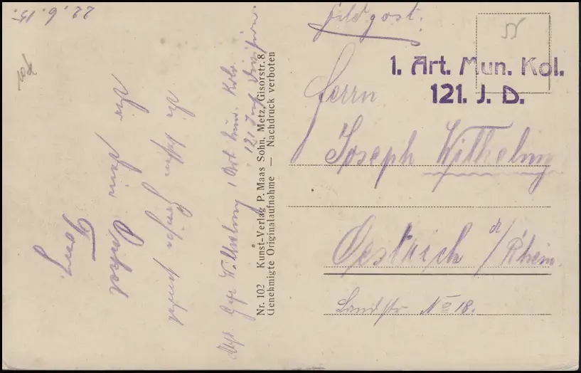 Poste de terrain 1. Coll. Mun. Artillerie 121. J.D. sur AK St. Mihiel, main 22.6.15