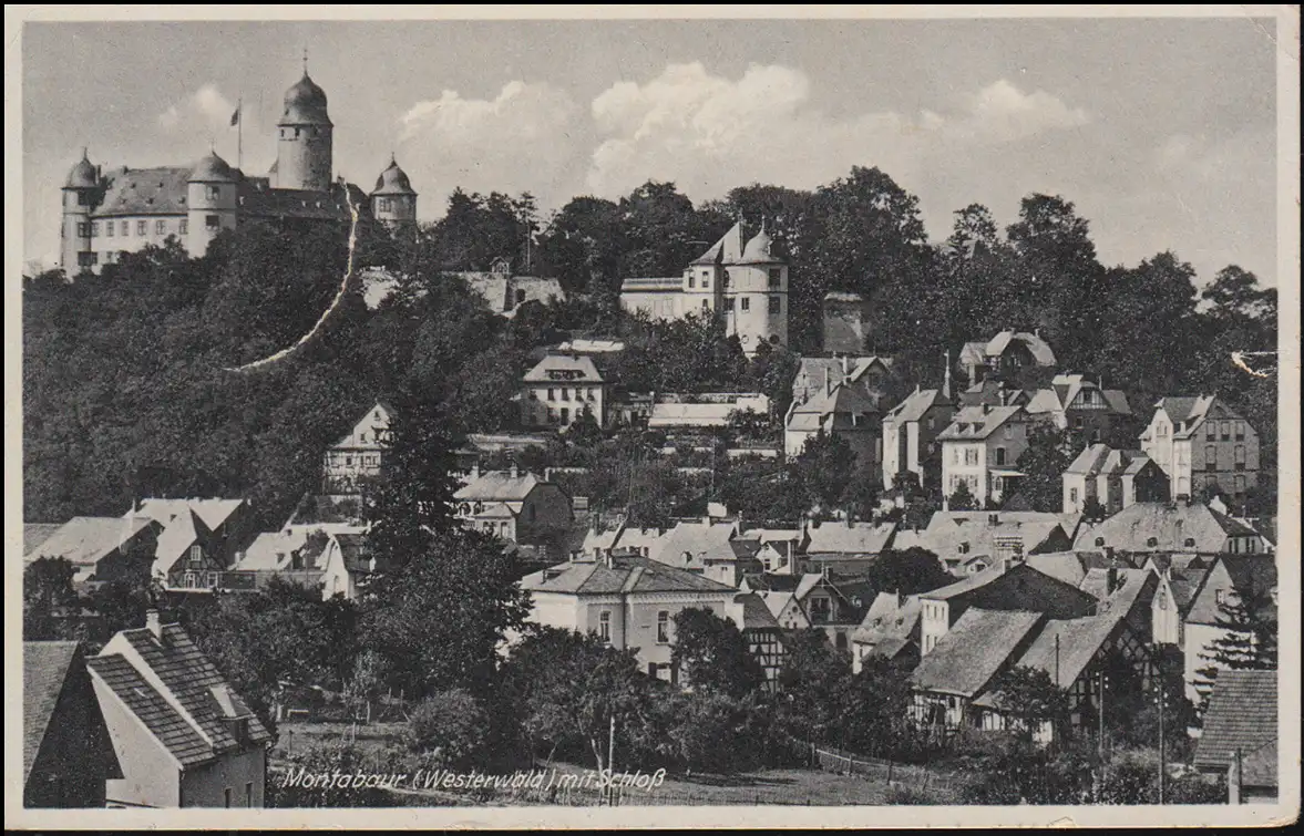 Poste de terrain 1.Comparé. Bat. de remplacement Inf. 226, AK Vue avec château MONTABAUR 20.5.41