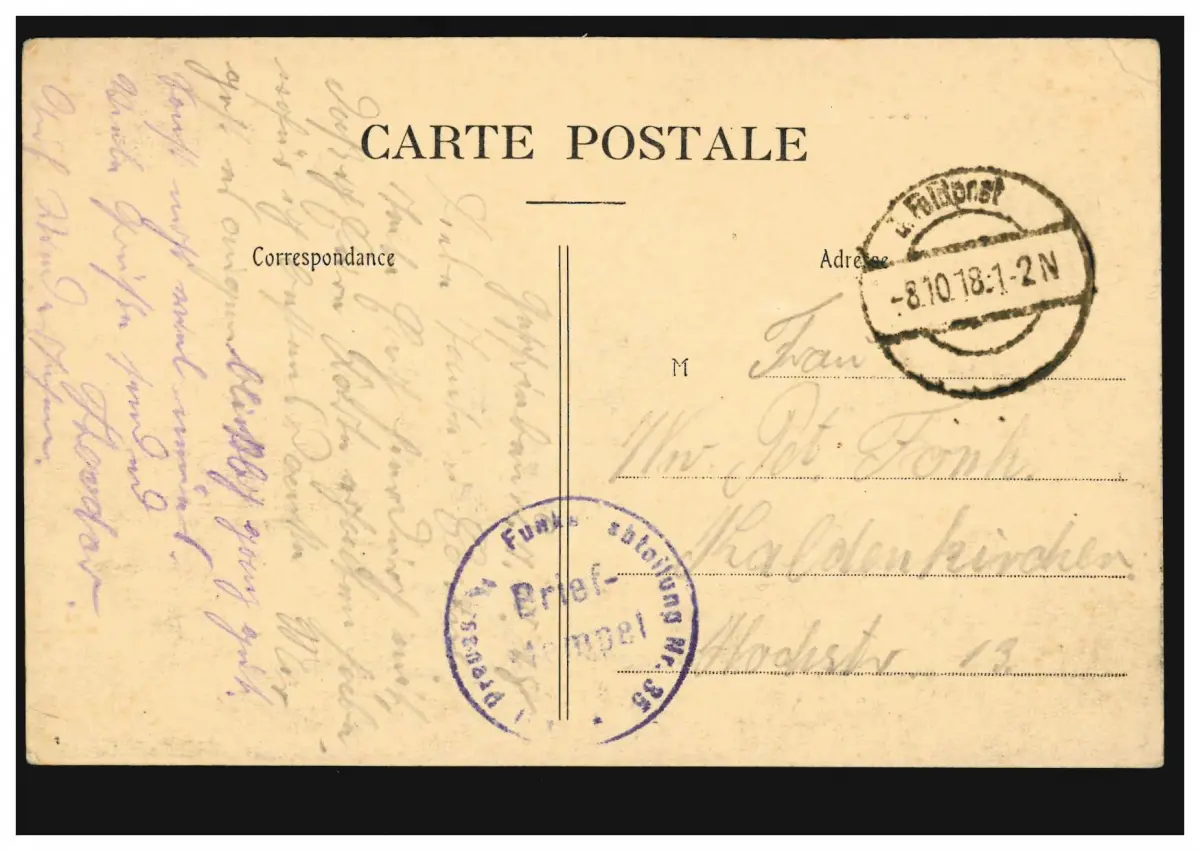 Poste de terrain 6.10.1918 avec BS Preuss. Division radio n° 35 sur les enfants de rue AK