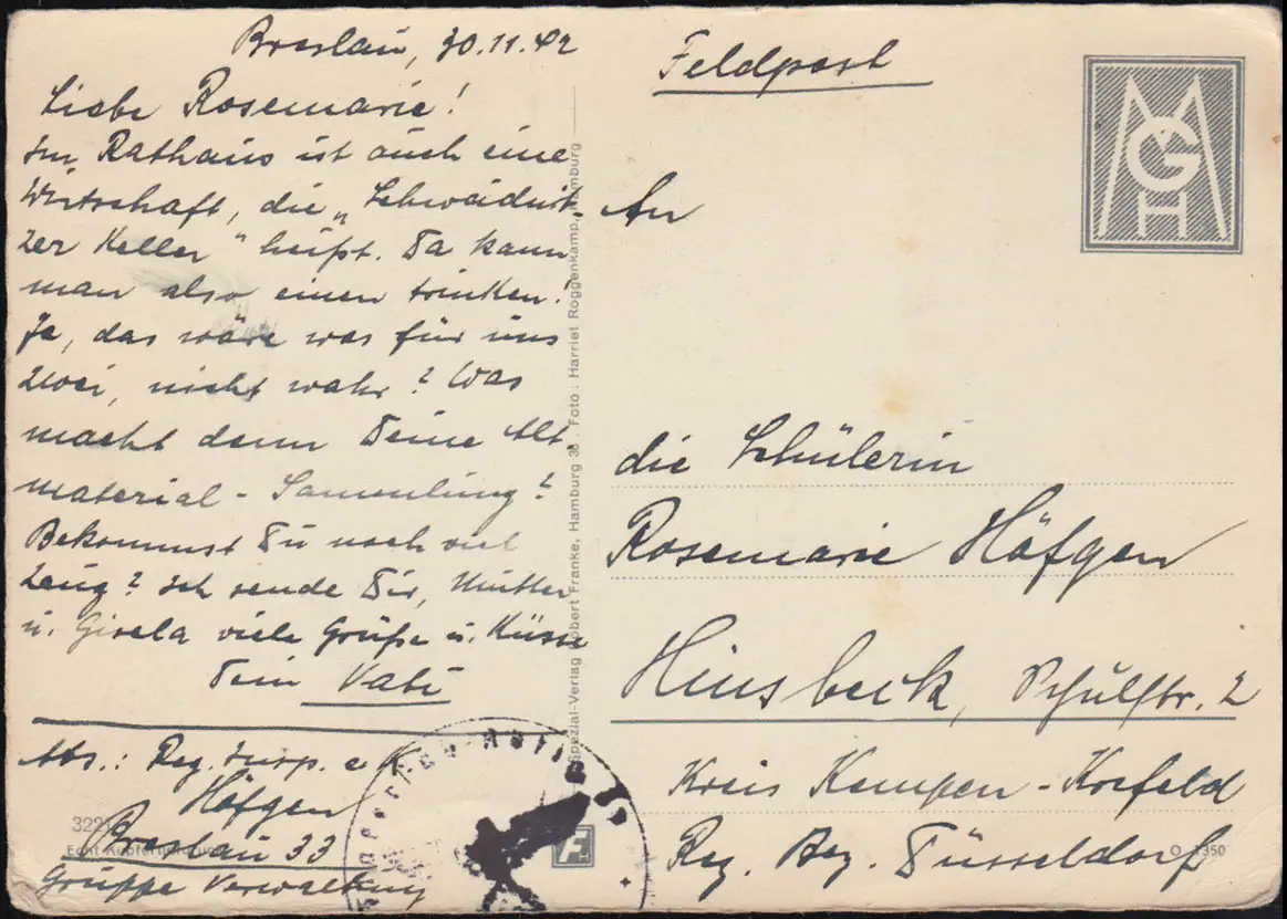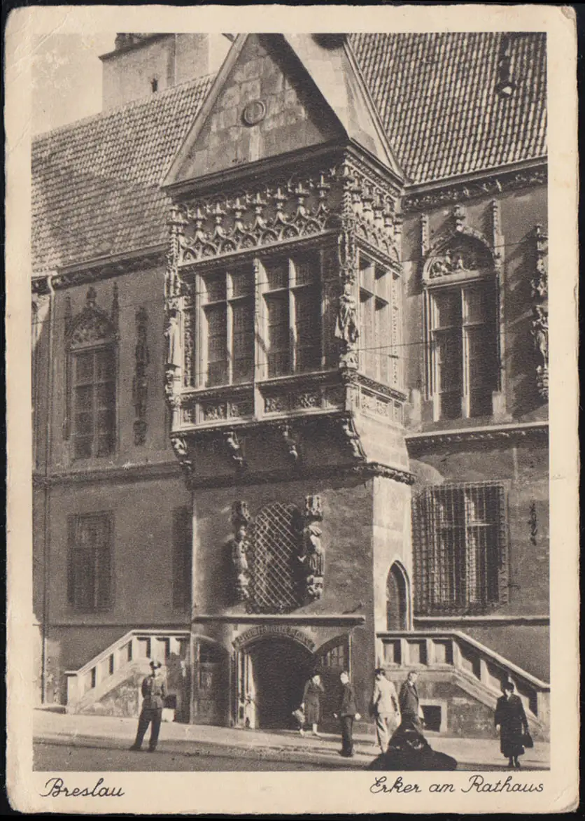 Poste de terrain AK Wroclaw Erker à l'hôtel de ville avec cachet, écrit le 30.11.42