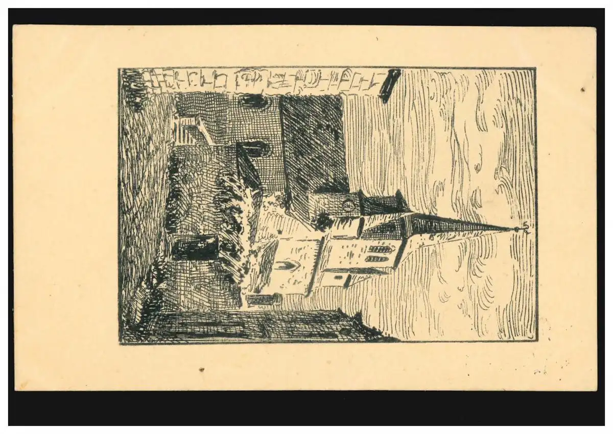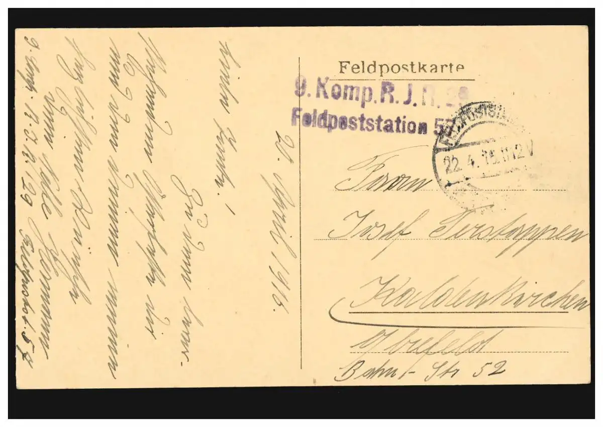 Poste de terrain BS 9 Comp. R.J.R. 29 Poste du champ 57 - 22.4.1916, Artiste-AK Eglise