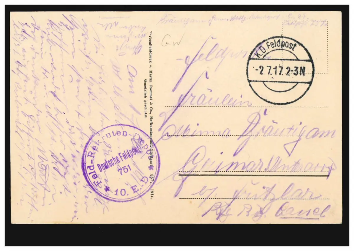 Poste de terrain BS camp de recrues de champ 751 / 10 E.D. sur AK vase de fleurs 2.7.1917