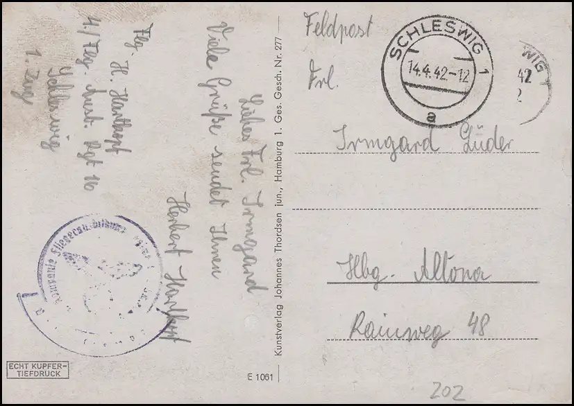 Poste de terrain BS Unité de formation des pilotes sur la propagande-AK Stukas SCHLESWIG 14.42.42