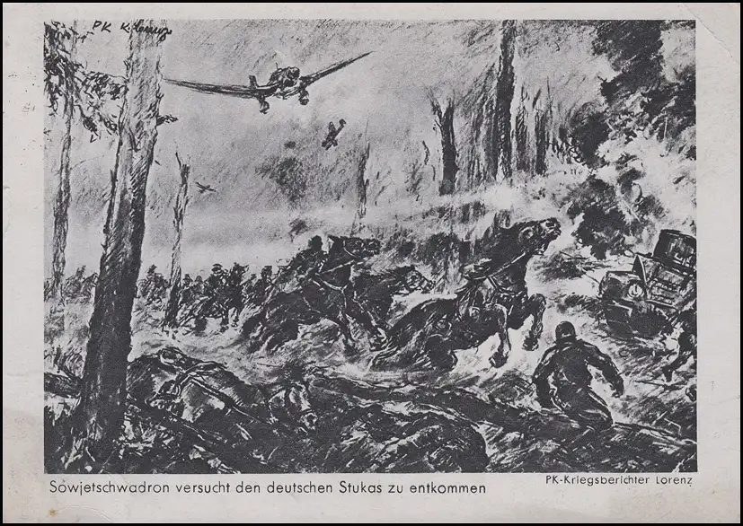 Carte visuelle: Soviétique escadron tente d'échapper aux Stukas allemands comme carte postale à distance à Hambourg-Altona. Examen: original Numéro d 'article: 00000000023742