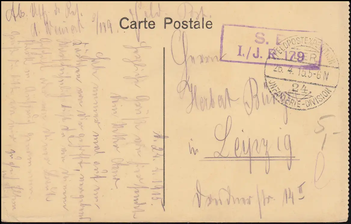 Poste de terrain B.S. I./J.R. 179 - 26.4.15 sur AK Lille Neue Börse avec clocher