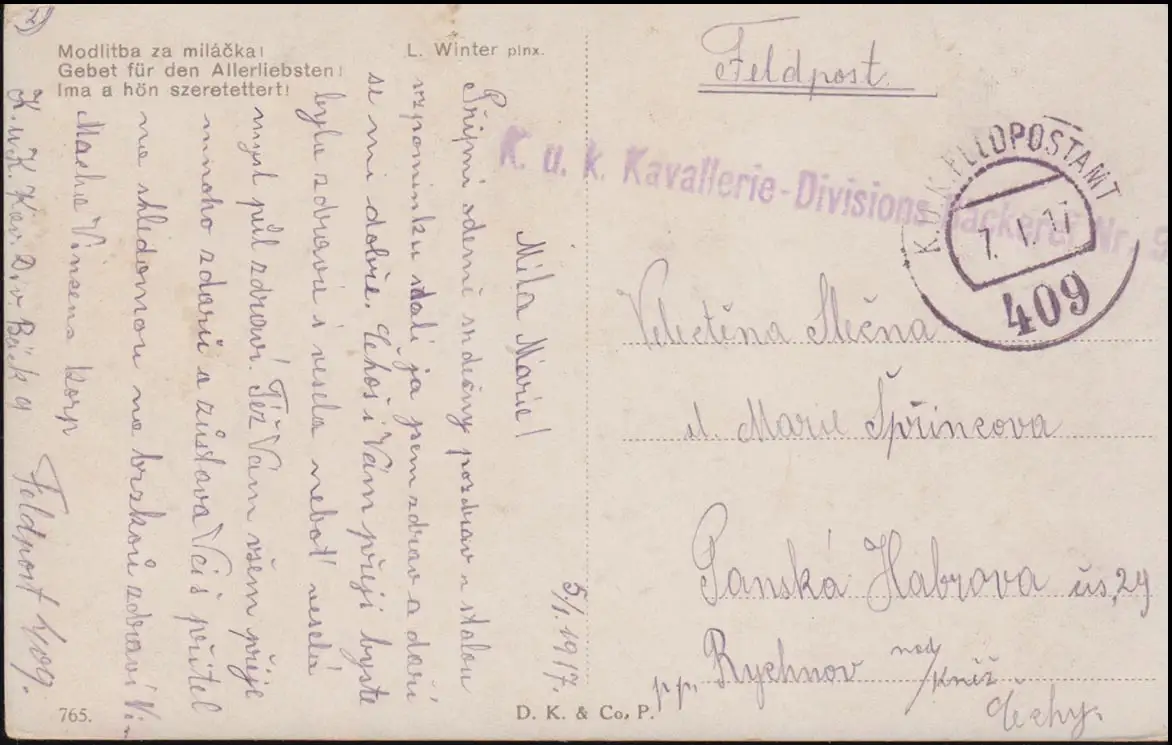 Poste de terrain BS K.u.K. Boulangerie de division de cavalerie FELDPOST 409 - 7.1.1917 sur AK