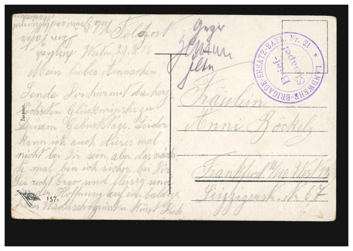 écrit le 29.3.1916, après Francfort/Main examen: original Référence produit: 00000000038541