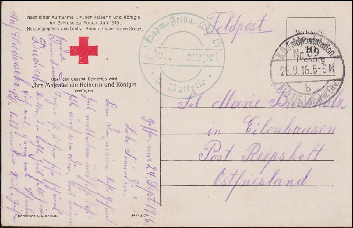 Poste de terrain B.S. Landwehr-Feldartillerie-Rgt. 15, 25.9.16, AK Dans le château de Poznan