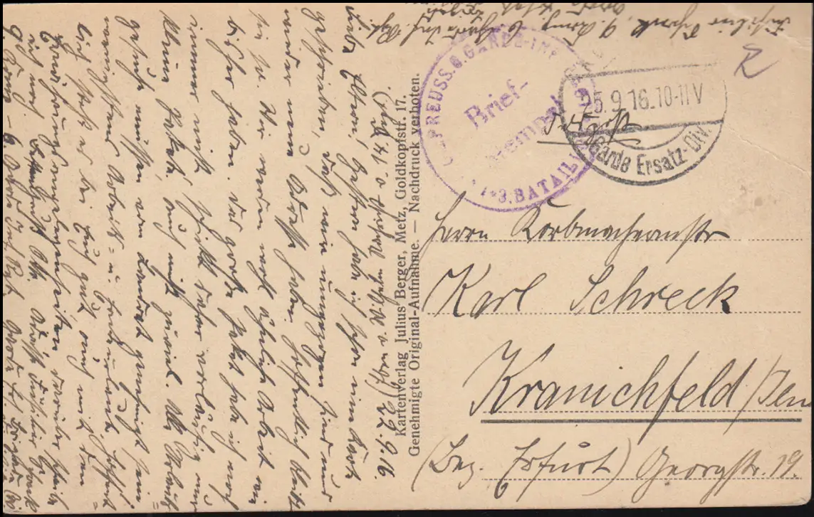 Poste de terrain B.S. Preuss. Garde-Inf. Regt. - 25.9.16 sur AK Euvezin - Total
