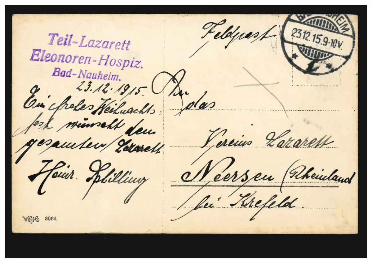 Poste de terrain BS partie-Hôpital Eleonoren- Hospiz BAD NAUHEIM 23.12.1915 à Neersen