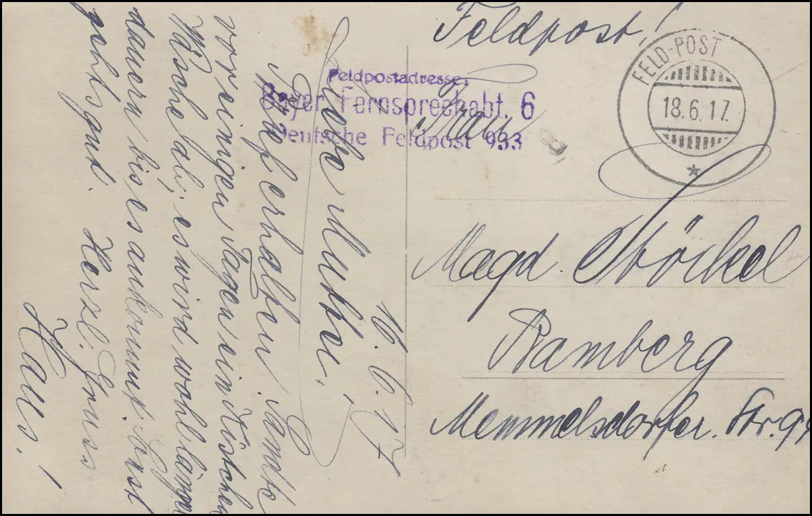 Poste de terrain Bayer. Téléphone AK 6 sur militaire leader FELD-POST 18.6.1917