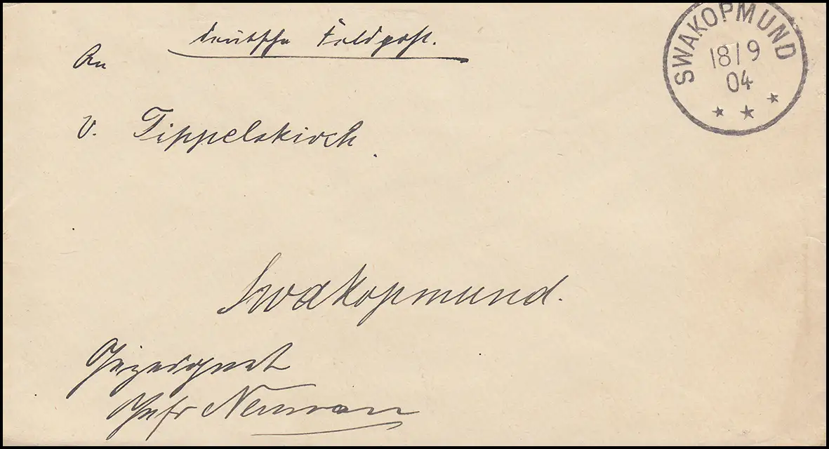 Lettre de poste de terrain DSWA Lieu-Bf. SWAKOPMUND 18.9.1904 à l'époque de l ' insurrection Herero
