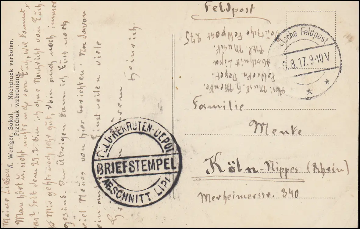 Poste de champ Timbre de dépôt de recrues de champs Lipi 6.8.17 sur AK Sokal