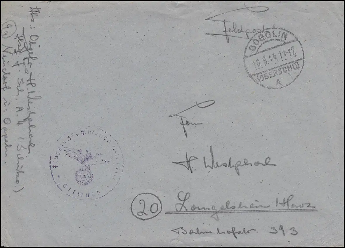 Feldpost Fliegerhorst Neudorf-Oppeln Lettre de GOGOLIN / OBERSCHL. 10.6.1944