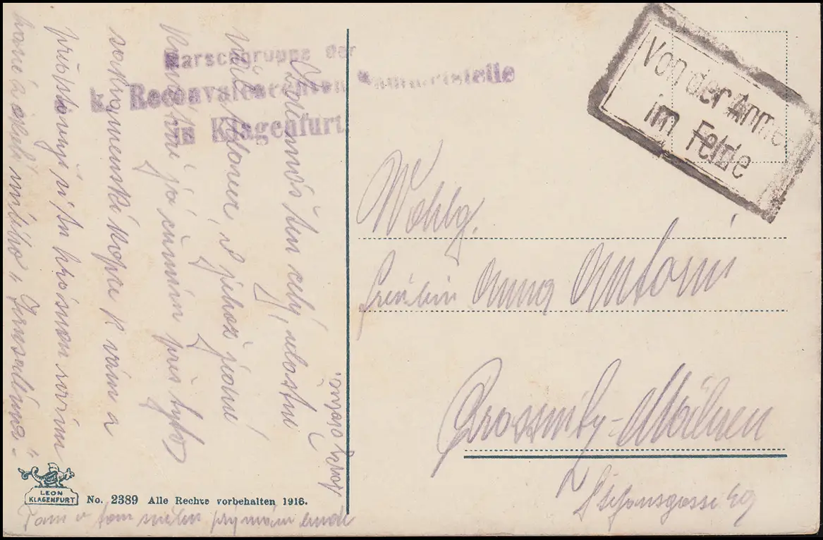 Feldpost Groupe de marche du point de rassemblement de Reconvalences k.k. à Klagenfurt sur AK