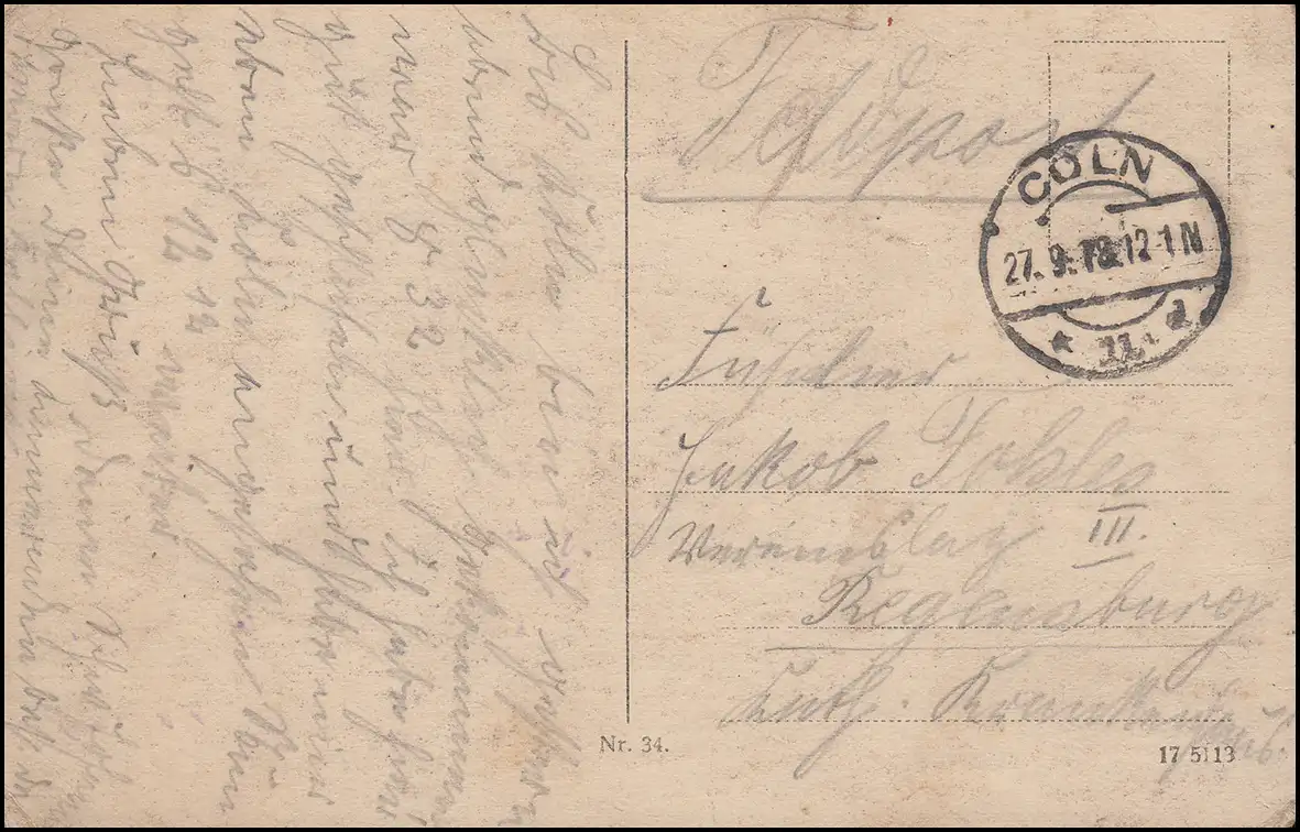 Carte de poste de champ CÖLN 27.9.18 sur le monument AK Kln Richartz