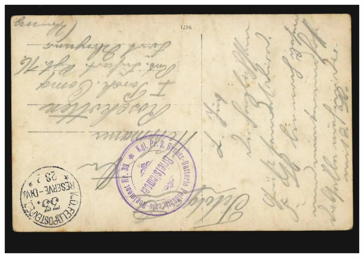 Poste de terrain Kgl. Pr. 2. Batterie de remplacement régiment d'artillerie de champ 33 vers 1916 sur AK