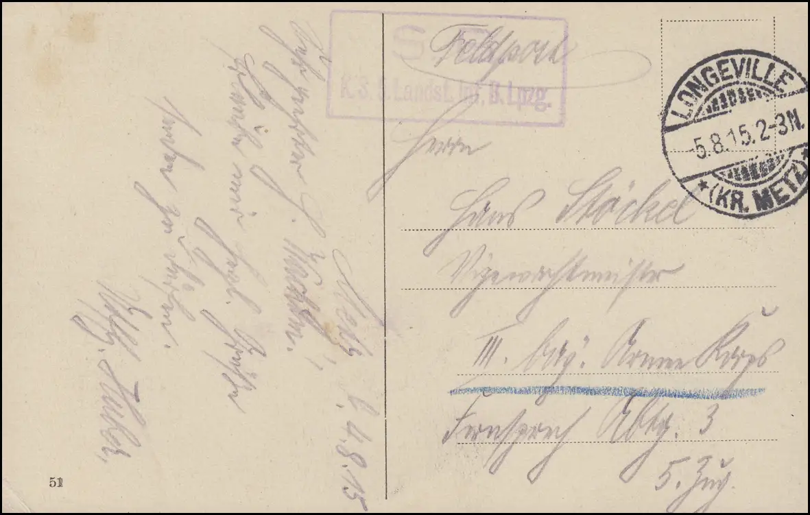 Feldpost Landsturm-Inf.-Batl. Leipzig sur AK Metz Jacobsplatz LONGEVILLE 5.15
