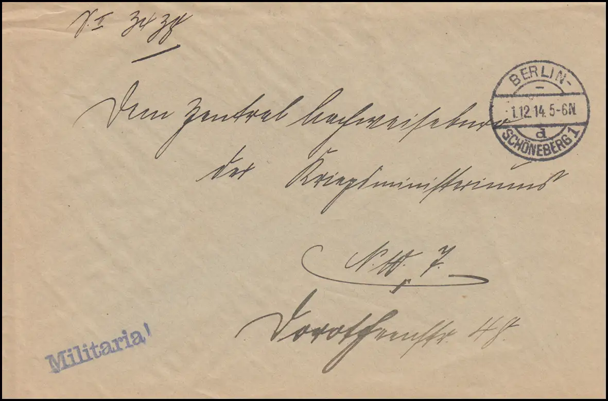Poste militaire Militaria Kön. Preuss. Kommandandantur militaire BERLIN-SCHÖNEBERG 1.12.1914