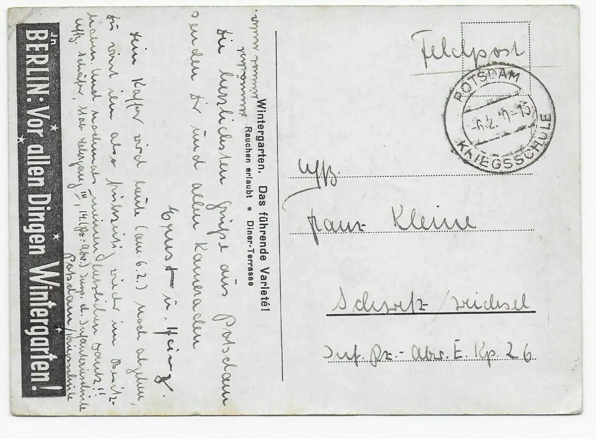 Post Feldpost Potsdam, école de guerre 1940, Wintergarten, Varieté après Schwetz