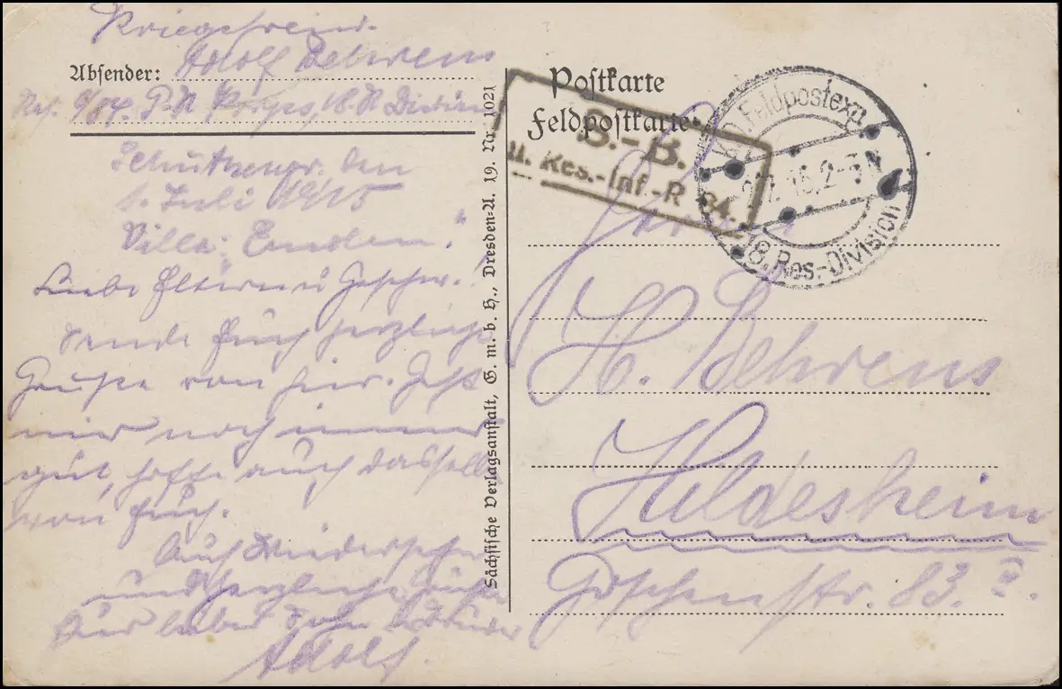 Poste de terrain Res.-Inf. - R. 84 sur AK Dans la station de téléphonie de champ, FELDPOST 2.7.15