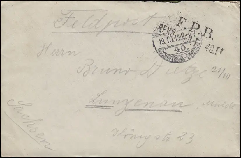 Poste de terrain SB F.P.B. - REKB DEP I - 40 II. FELDPOST 40. Div. Inf. après Lunzenau