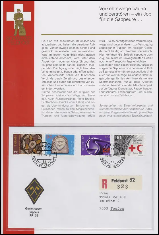 Poste de terrain Suisse Forces de génie / Sappeur PP 32 - FELDPOST 32 26.10.94