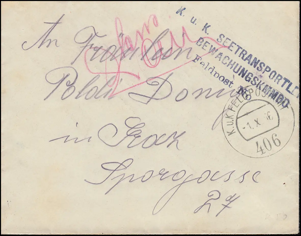 Poste de terrain Transport maritime Commandement de sécurité ... Lettre FELDPOST 406 - 1.10.16