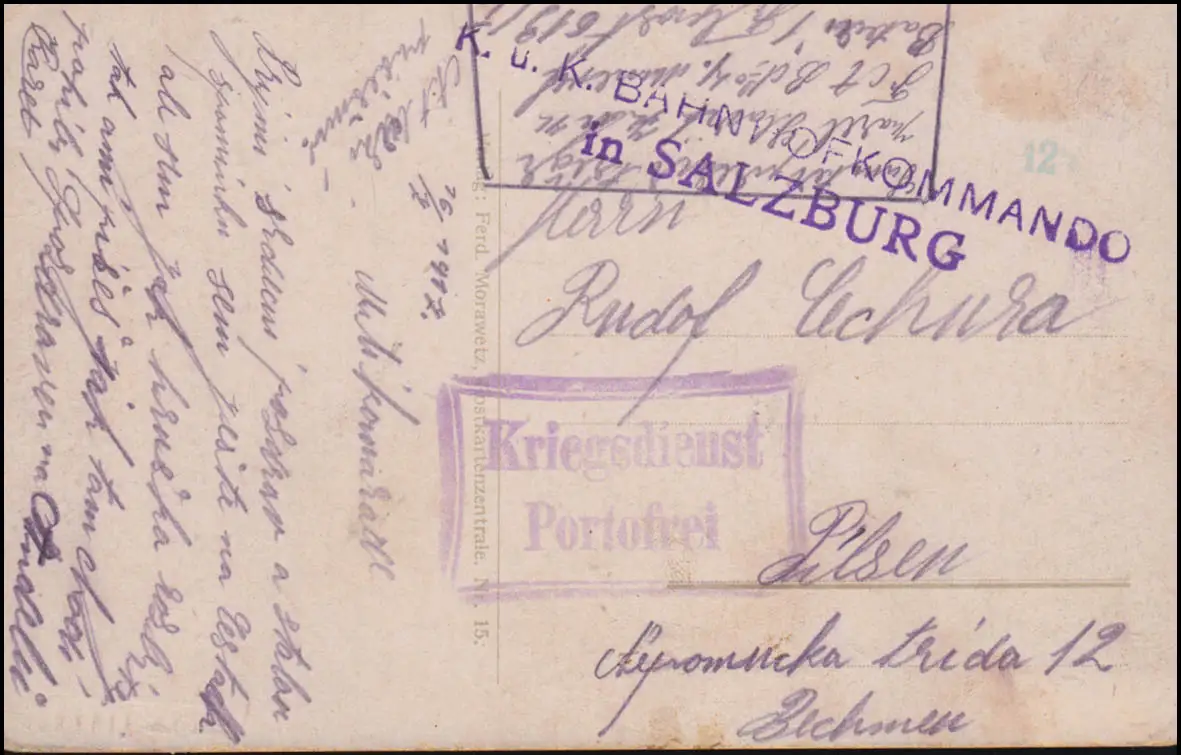 Feldpost Censure K.u.k. Gare commando Salzburg, AK correspondant, écrit en 1917
