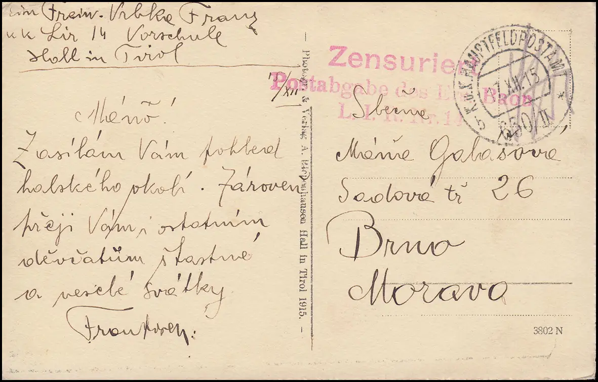 Tampon de poste "K.u.K, PÔT DE POUVOIR TERRESTRE b - 630 / II. - 17.12.15," couru à Brno / Brünn Contrôle: original Référence produit: 00000000026998>Note: Cet article n'est disponible qu'une seule fois. Vous recevrez exactement l'article représenté.
