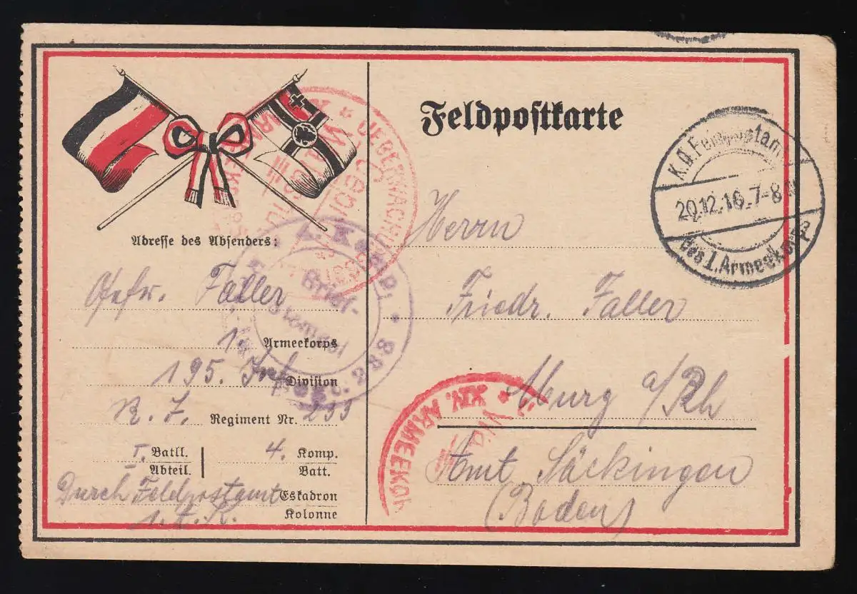 Carte postale de terrain K.D. Bureau de poste de campagne 195.