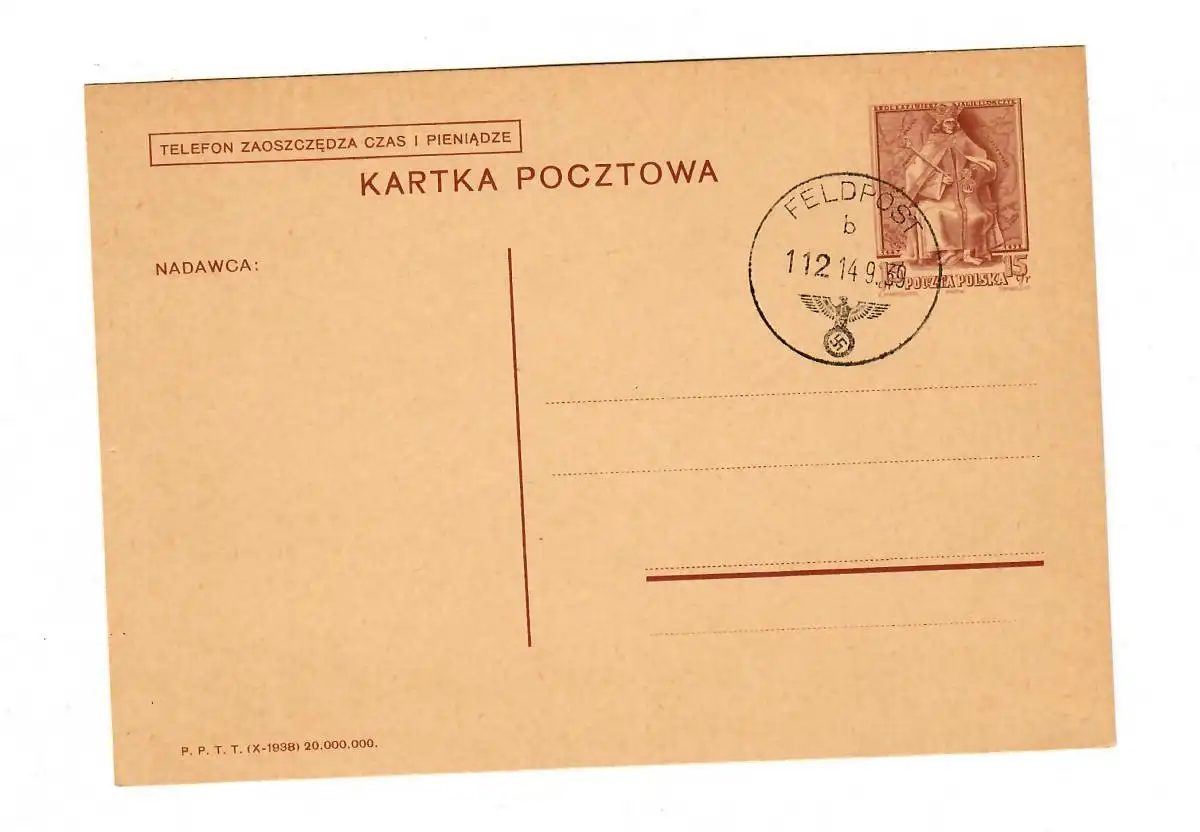 Timbre de poste de champ 14.9.39 sur le polonais. proie-tout, cachet encore en campagne polonaise
