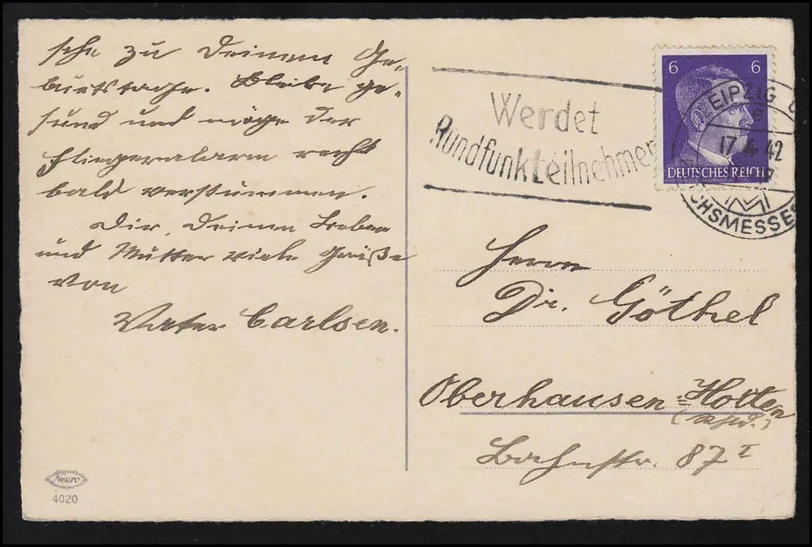 Félicitations AK Sekt Roses Cravate, cigares LEIPZIG (ville de foire) 17.4.42