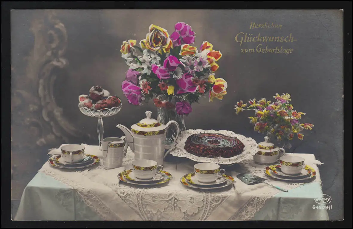 Félicitations AK café gâteau bouquet "le courrier de force" ajouter O, BERLIN 16.9.31