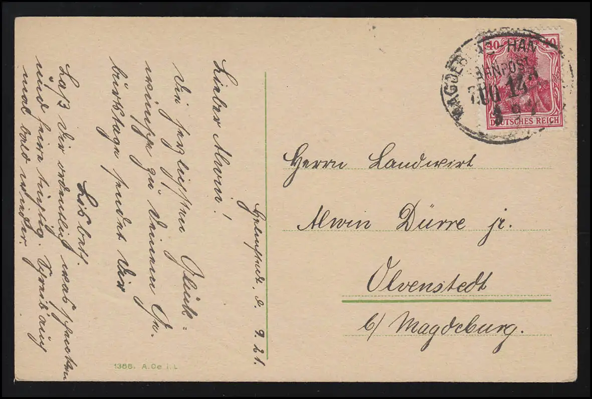 Félicitations pour l'anniversaire des fleurs lier Band Bahnpost MAGEDEBURG HANNOVER 1921